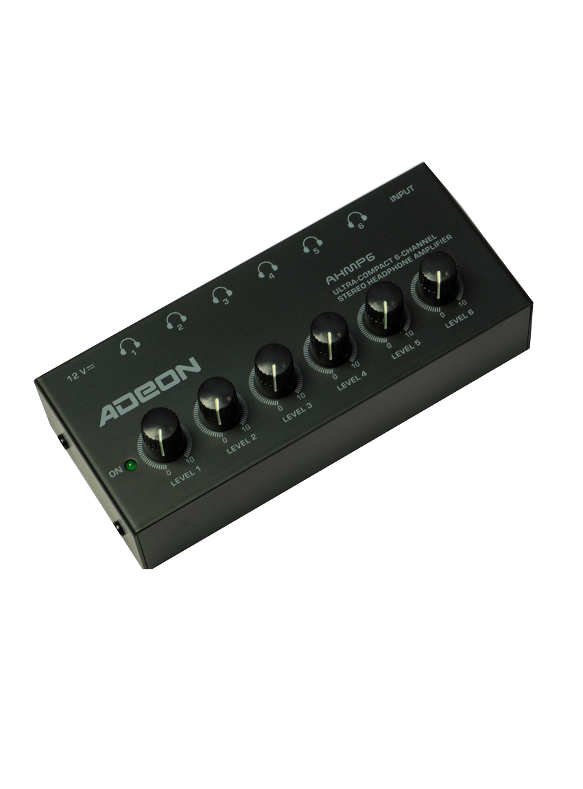 The Adeon AHMP-6 Headphone Amplifier is a professional 6-channel stereo headphone amplifier with dedicated volume controls. Designed for studios, musicians, and content creators, it delivers crystal-clear sound and ultra-compact portability.