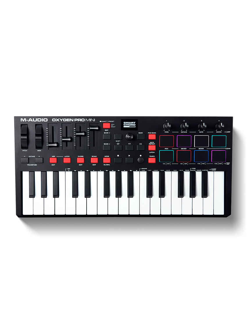 The new Oxygen Pro Mini controllers open up worlds of expression and creativity and make bringing your production ideas to life more seamless than ever. Taking feedback from users and artists alike, these controllers are the ultimate studio and live performance tools, allowing you to keep your focus on creating music.M-Audio Oxygen Pro series is perfectly flexible for your workflow.